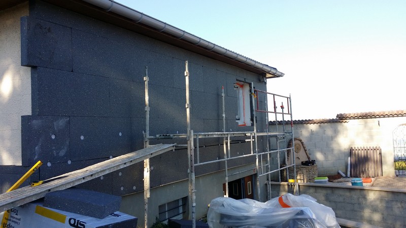ESTRABLIN(38)ITE Polystyrène graphite 12 cm finition stolit k- 99 m² - Avant les travaux . RAV en stolit k (grésé) de 25 m²