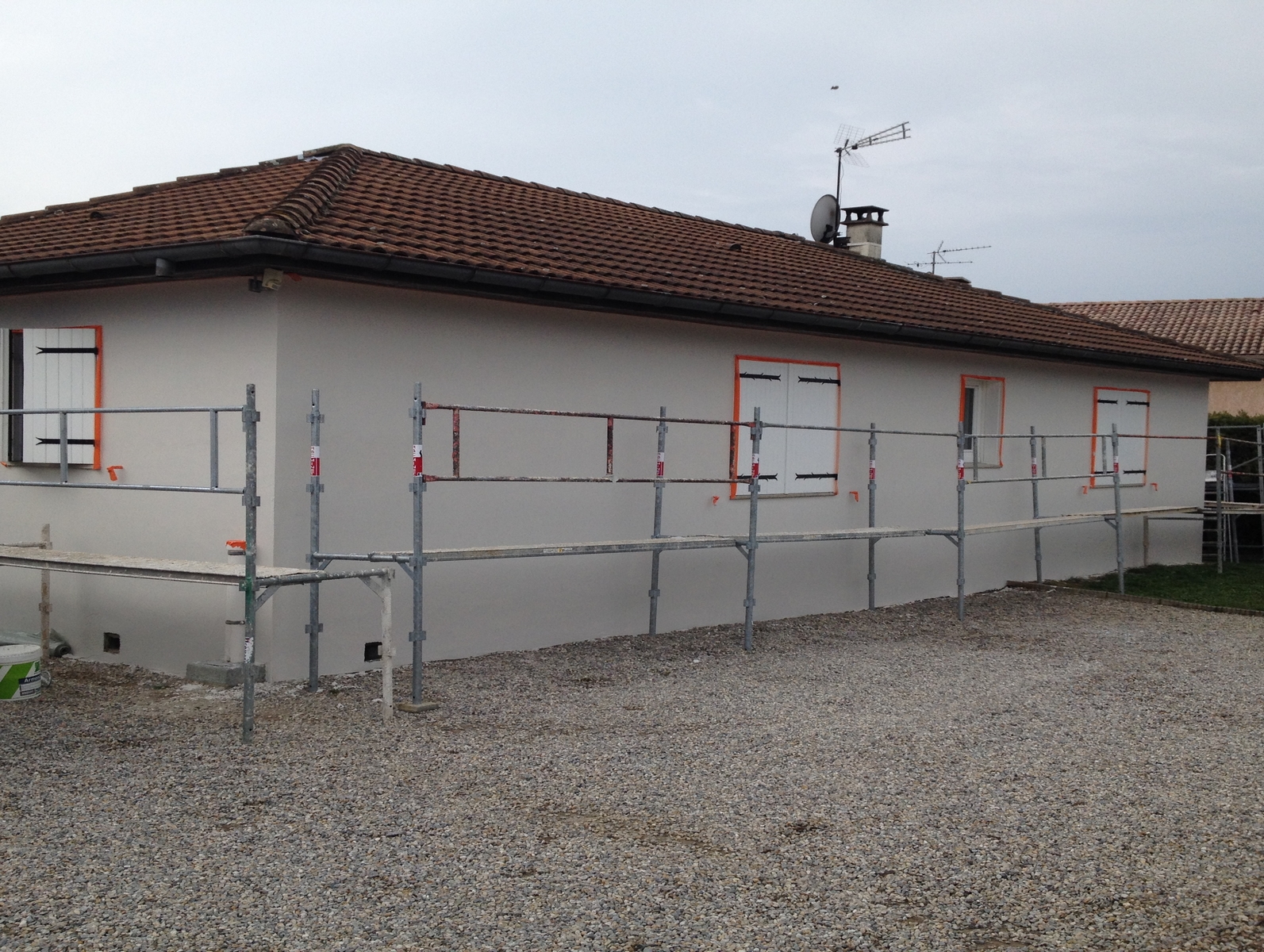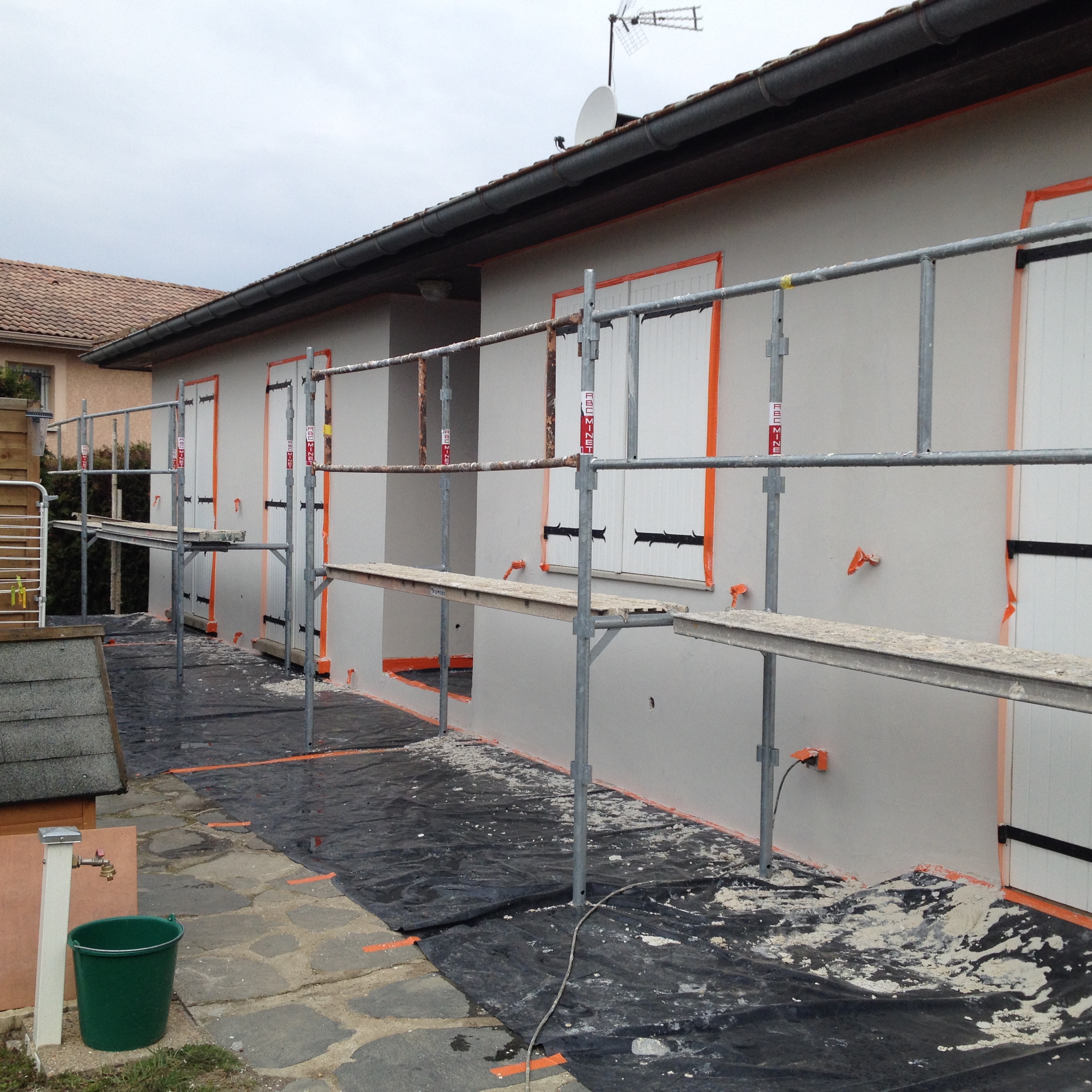 RAV VERNOSC (07)- Ravalement 180 m² en projection, finition grattée