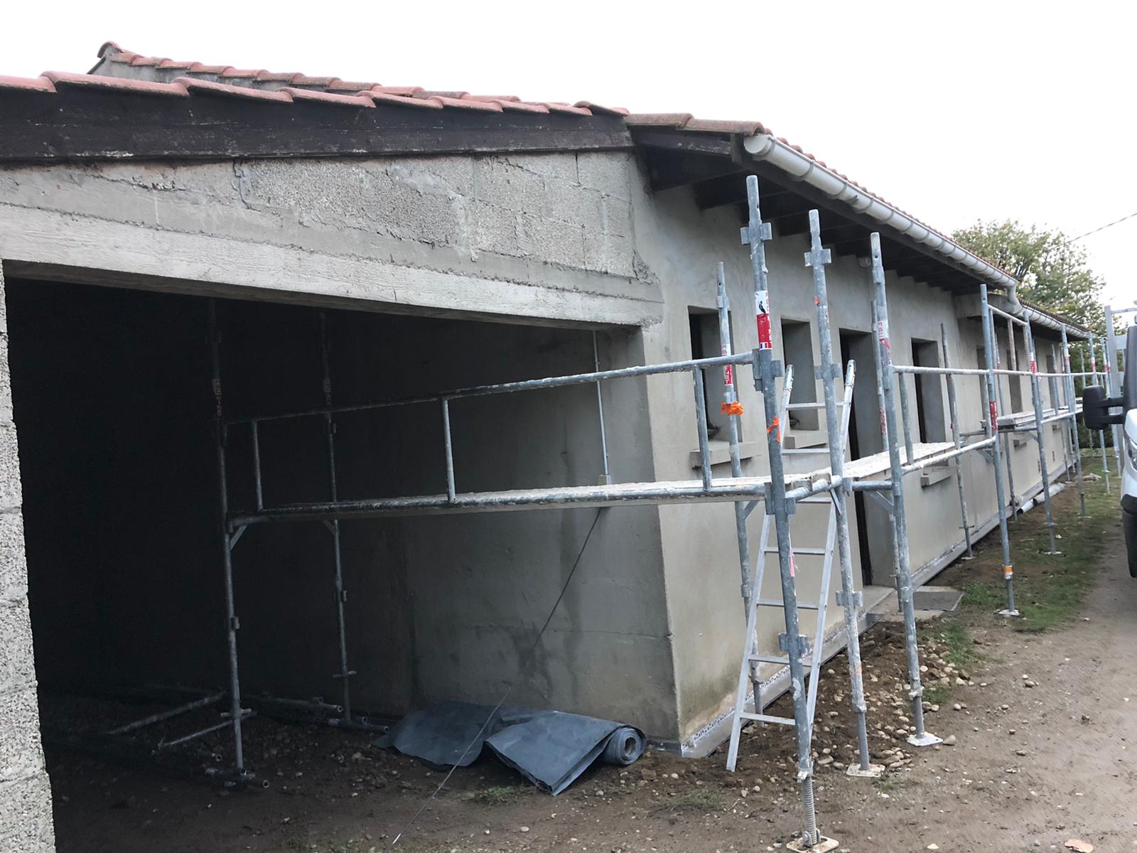 TALENCIEUX - ITE Chantier en cours en Isolation Thermique par l'Extérieur Polystyrène Blanc épaisseur 160 mm