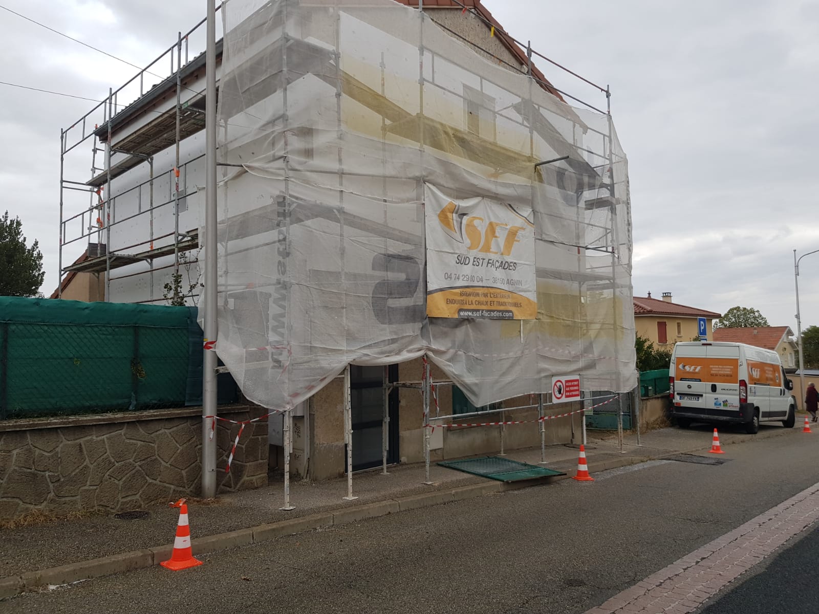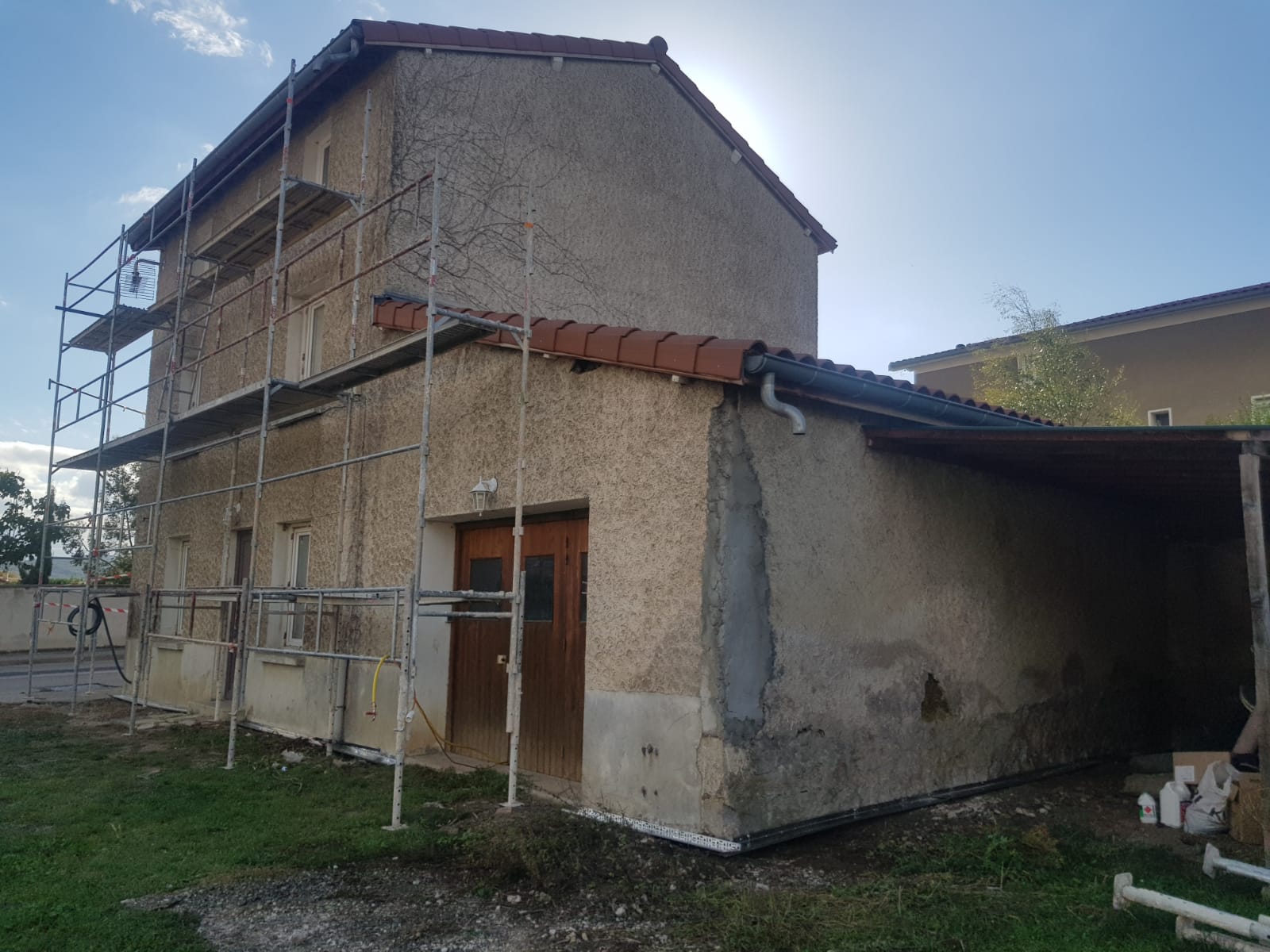 MESSIMY(69)- ITE Isolant épaisseur 140mm avec un enduit mince RPE Finition taloché. Avec le système Armaterm de Zolpan