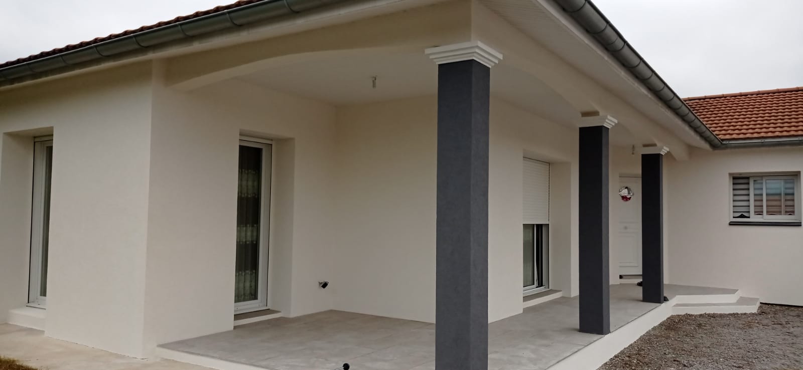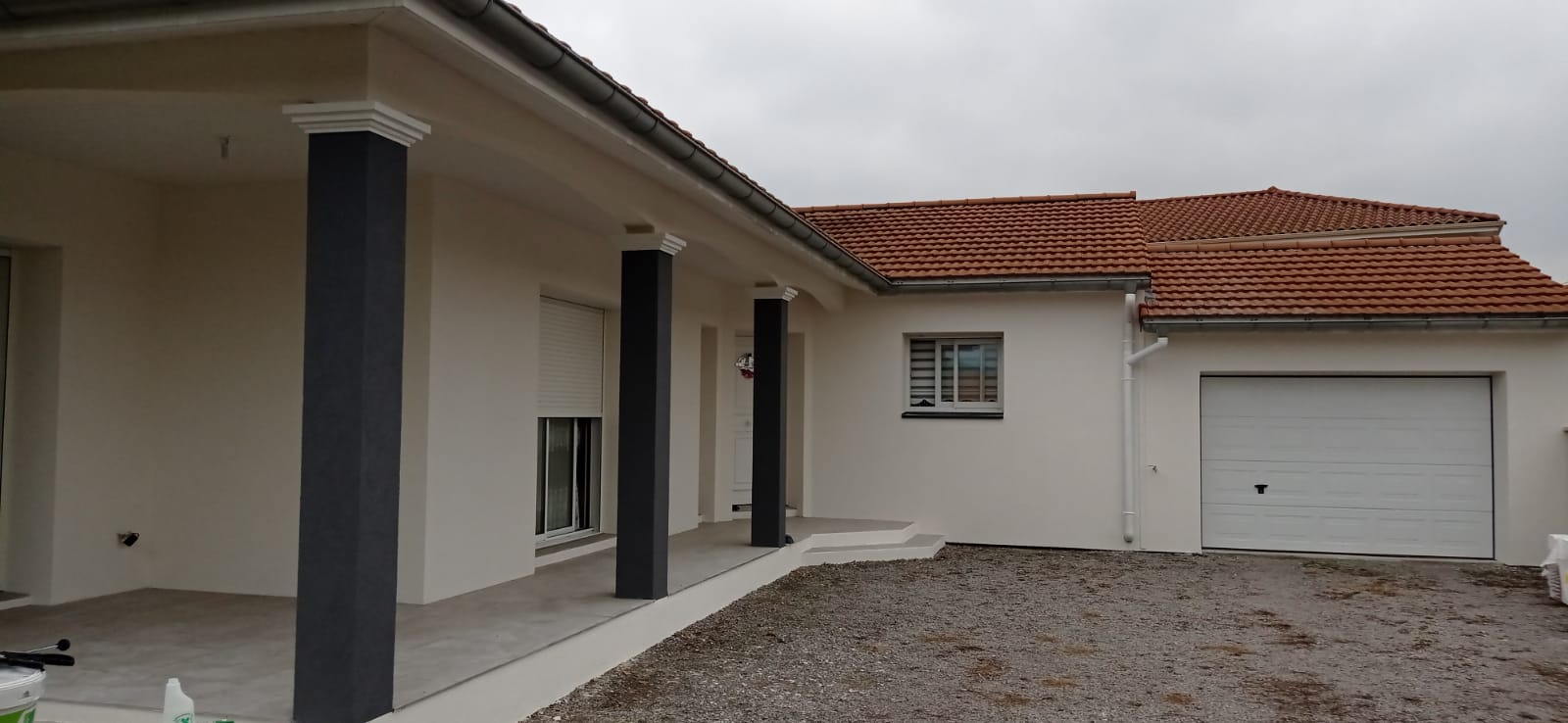 ITE - LE PEAGE DE ROUSSILLON (38550) Isolation Thermique par l'Extérieur avec Polystyrène épaisseur 14cm. Enduit Organique RPE, finition talochée.